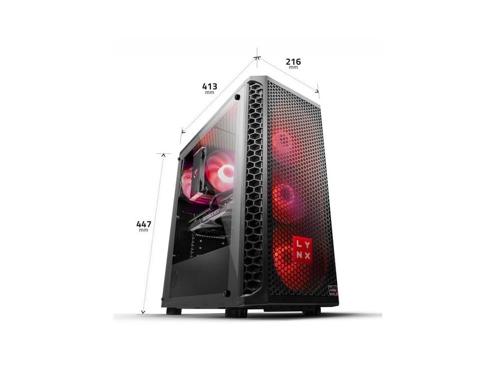 Herní sestava LYNX Challenger Ryzen 5 je ideální volbou pro hráče, kteří chtějí vysoký výkon bez kompromisů. Zvládá moderní herní tituly ve vysokých detailech, online hraní s vysokým FPS a je připravena i na práci, studium nebo multimediální zábavu. To vše v atraktivním designu, který zaujme na první pohled.