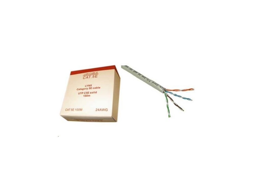 Inštalačný kábel LYNX Cat5E UTP je vhodný pre trvalé inštalácie vo vnútornom prostredí budov, stavieb a iných zariadení. Kábel je vhodný pre prenosové rýchlosti až 2,5 Gb/s. Kábel je vyrobený z medeného drôtu s priemerom 24AWG s PVC plášťom a triedou reakcie na oheň Dca.